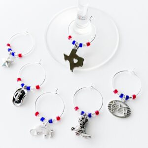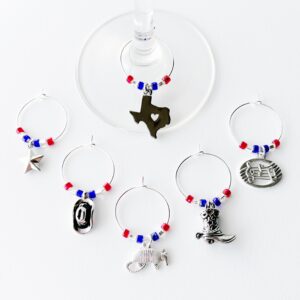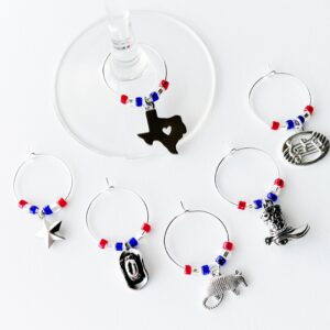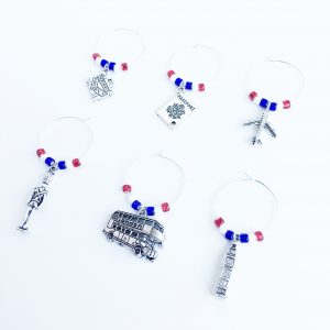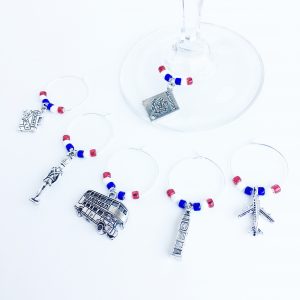 Add the finishing touch with these Las Vegas wine charms. Ideal for any Las Vegas theme party whether it’s a bachelorette party or a girls weekend. Set of 6 wine glass charms with the iconic Vegas colors.