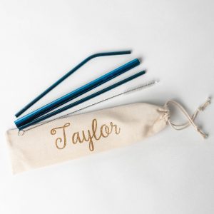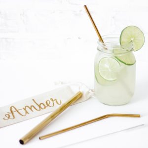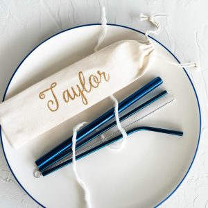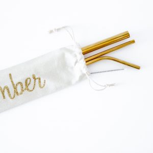 Reusable rose gold drinking straws are eco-friendly, compact and easy to travel with – perfect for hiking, camping, traveling, professionals and busy moms. Drinking straw set comes with three rose gold stainless steel straws, one cleaning brush and one monogrammed bag.